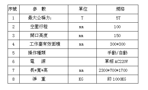 3:機(jī)械安全部分工作臺(tái)經(jīng)過(guò)真空調(diào)質(zhì)處理,表面電鍍處理長(zhǎng)期使用不變形,不生銹。裝卸模具之設(shè)計(jì)簡(jiǎn)單,方便,快捷。操作面可加裝紅外線安全裝置。雙手同步操作,急升保護(hù)裝置。